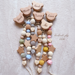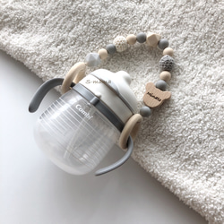 grayのシリコンビーズ と木製お星様を使用し、一番下の角ビーズはマーブルグレーになっております。