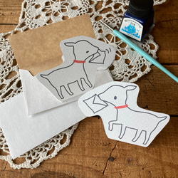 便箋よりもすこし厚い紙でつくっています。すこしインクがかすれているものもあります。あらかじめご了承ください。3柄各5枚入りです。