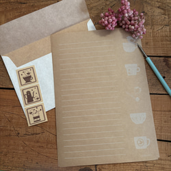 いろいろなパンやコーヒーをいれる道具、カップなど、パンとコーヒーが好きな方に使っていただきたい一筆箋です。ちょこっとメッセージや添え状などにどうぞ。