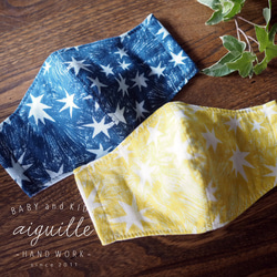 ◎生地の重なりが少なくなるように製作しています。また表裏両面にステッチを入れることで形が安定し、息がしやすいマスクになっています。