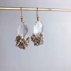 クリアメインですが、今の季節にも合わせやすいデザインです☺︎☺︎♪ ほんの少し個性的なイヤリングで、季節問わずおしゃれを楽しんでいただけると幸いです♡