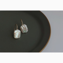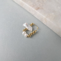 届きました!画像通りに素敵で、私は耳たぶが厚めなので心配でしたが画像のように付けることが出来ました。バロックパールとゴールドのビーズが縦に並んで、可愛らしすぎず大人しすぎず好きです。繊細な作りなので、大切に扱います。ありがとうございました!