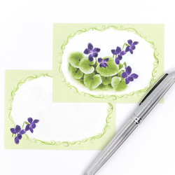 素敵なスミレのメッセージカードです!紙が厚くなく薄くなく、しっかりとしていて大好きです。プレゼントで入れて頂いた縦書きの一筆箋(ミニ?)とても気に入りました(^^)