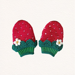 イチゴが大好きな孫用に購入させていただきました。クリスマスプレゼントまで待ちきれずに、まだ少し大きいかと思いましたが(遠方に住む)孫に送ってしまいました。趣味で編み物しますが、やはりプロはきれいで感動しました。可愛いミトン、ありがとうございました。
