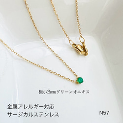 前回購入したラピスラズリのネックレスを気に入ってずっとつけていたのですが、うっかりチェーンを引っ掛けて壊してしまいました。ショックでまた同じものをと思ったのですが今回は色違いでグリーンオニキスにしました。色が鮮やかで小さいのに意外と映える感じで良かったです。今度は壊さないように大切に使わせていただきます。
