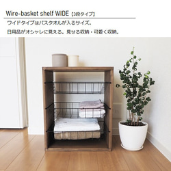 下の棚には新聞、雑誌、スケッチブック、色鉛筆等々を別途注文したワイヤーバスケットシェルフにあわせたバスケットを購入して収納しています。
