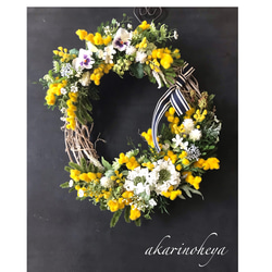 玄関ドアに飾りました。ボリュームとデザインのバランスが良くて、とても気に入りました!とっても可愛いです♪屋外なので、日差しの影響は少し気になるところですが…長く飾れたら嬉しいです。