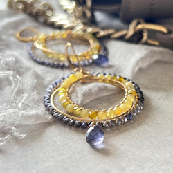 ブルーとイエローの反対色でもコントラストが強くなく大人っぽく着けていただけると思います。
