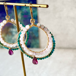プレーンドロップルビーとボタンカットルビーの美しい真紅が、お顔まわりを華やかに飾ってくれると思います。