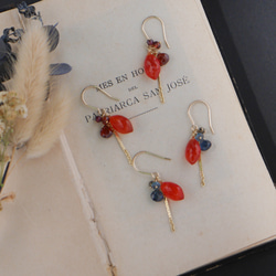 冬の服に合いそうだと思って購入しました。オレンジがかったカーネリアンが髪の色に紛れずに良い感じですし、小さなガーネットが可愛く寄り添ってくれます。