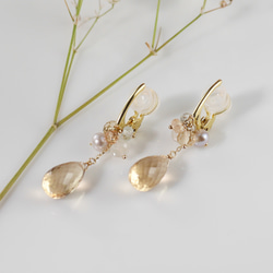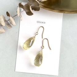 透明感ある綺麗なレモンクォーツで肌馴染みも良いので、いろいろなお洋服とも合わせやすく耳元でキラキラと存在感を出してくれると思います。