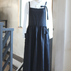 フレンチリネンのエプロンに合わせてせめてものおしゃれ気分