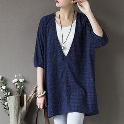 藍染のような色で、地模様が有りしっかりした生地で、触るとこの時期暑いかなと思いましたが、着てみると案外サラッとした感じです。