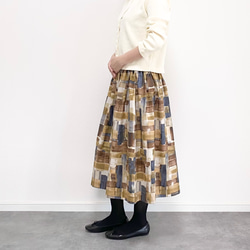 一見目を惹くドラマチックな柄ですが、多色使いなので、色んなトップスと合わせやすそうです。