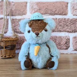 とっても可愛いチョコミントのくまちゃん届きました🩵チョコミン党な私にはたまらないです🍦眠たげな表情がゆるくて癒されます🌿早速お帽子を被せて飾っています^^お心遣いまでいただきありがとうございました💐世界に一つだけのくまちゃん、大切にしますね♪