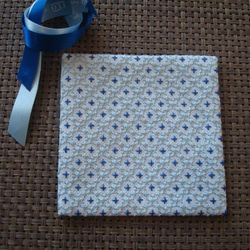 和紙の袋と天然石は、青と白を基調にし、透明な天然水晶を使用しております。