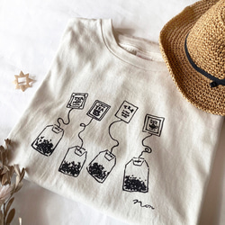 ベージュの色合い、ティーバッグのデザイン、Tシャツの厚みと長さなど、どれも気に入りました。