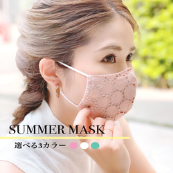 白のお花の型抜きレースが、軽やかに見せてくれるマスクです。お役に立てたら幸いです。