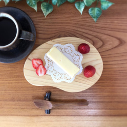 かわいいそらまめプレート よくばってトチとヒノキをお願いしました。同じ形ではありますが、趣が違い使う携帯が楽しみです。作家さんの優しさがいっぱいつまったプレート スプーンと共に大事に使わせていただきます。使うたびに癒やされています。ありがとうございます。