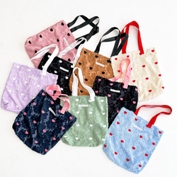 グリーンと生成り2色をそれぞれにすずらんとさくらんぼチャームをつけていただき購入しました。とても可愛いバックが届き娘と私お互いとても嬉しいです😊大切にたくさん使わせていただきます!
