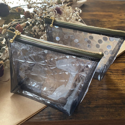 とても素敵なポーチです。化粧品を入れるのにぴったりのサイズでした。水玉模様が綺麗で、反対側の黒い透明な面もシックで好きです。ありがとうございました。
