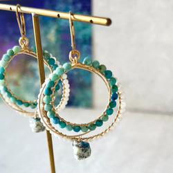 動く水とペン先の対比が面白いピアスで、色合いも気に入りました。