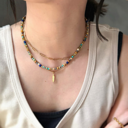 お品を手に取ると、多面にカットされたラビスやターコイズ、ジャスパー等の石重すぎず軽すぎずの絶妙な配置にあり、まさに大人の!ネックレスだと嬉しくなりました。