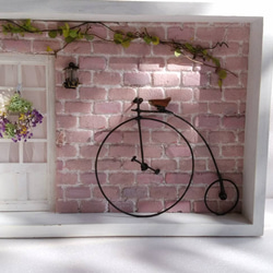 ドアのガラスやカーテンも精巧に出来てて素晴らしいです✨花のリース、電灯、壁の色合いなど、どのパーツもとっても素敵な作品です。