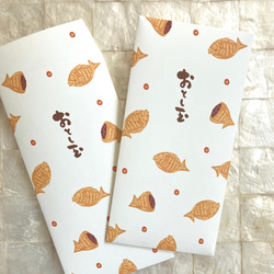 素敵なさつまいもとたい焼きの絵に、ニコッとなります。とても可愛いポチ袋をお届けくださり、有難うございました。