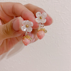 お母さんに付けて貰ってクルクルしながらお披露目してくれたのですが、可愛らしいピンクのイチゴがとても似合っていました。