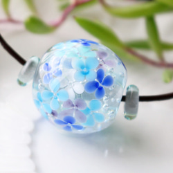 ここまで繊細に紫陽花が表現されたとんぼ玉は初めてで、一目惚れで購入しました。