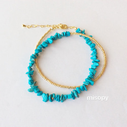 インクルージョンが少ない艶やかなターコイズは、リュクス感があり、コーディネートに差し込むだけでぐっと目を惹くアクセントになってくれます。