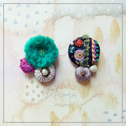 明るい色に重厚感のある色を組み合わせた、カタマリの国シリーズのピアスです。お楽しみいただけましたら幸いです。