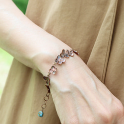 実際に身に付けてみたのですが、小ぶりで繊細で可愛らしい紫陽花にオイスターコッパーターコイズがほんとに良いアクセントになっていてとっても素敵なブレスレットだなー出会えて良かったなーと思いました✨大切に長く愛用させていただきます。この度はありがとうございました。またご縁がありましたらよろしくお願いします!