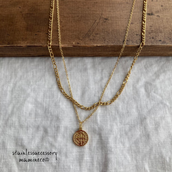 大汗かきなのでネックレスは諦めていましたが、殺風景な首元に我慢できず、私の理想的な作品を探していました。レイヤード、小さめのコイン、ゴールドのフィガロチェーン♡言う事なしです。