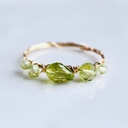 私と主人の誕生石でもあるのに、ペリドットの作品は何も持っていませんでした。いくつかタイプの違う物も欲しかったのと、私の太い指のサイズでつくって頂けるのが嬉しくてお願いしました。